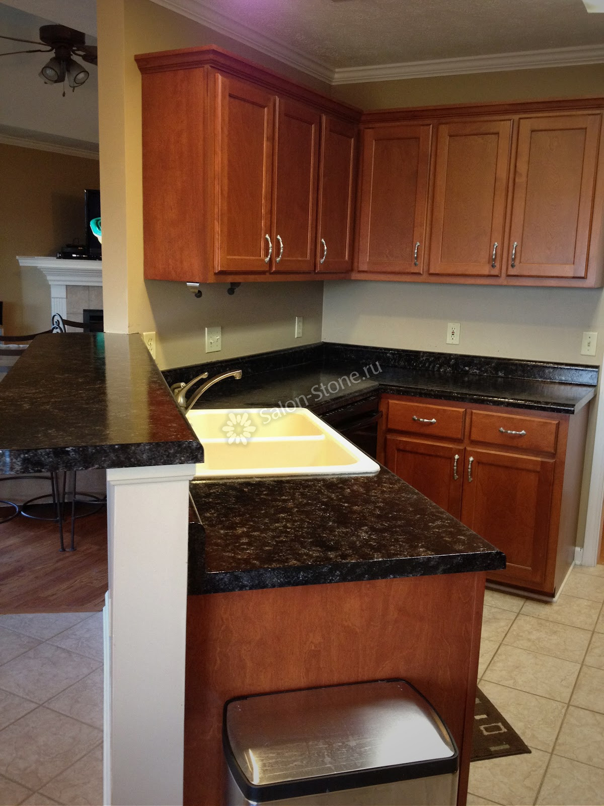- Несмотря на свою искусственную природу, этот материал выдерживает значительные нагрузки, устойчив к царапинам, влаге и ультрафиолетовому излучению. Это делает его идеальным выбором для кухонных столешниц, ванных комнат и других поверхностей, подверженных интенсивному использованию.
